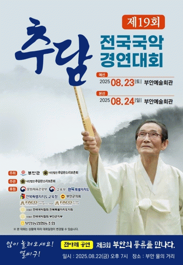 대회를 주관하고 있는 추담판소리보존회 김세미 이사장은 “이번 대회가 우리 전통예술의 맥을 잇는 우수한 인재들이 발굴되고, 국악의 아름다움을 많은 이들과 함께 나누는 뜻깊은 자리가 되길 바란다”고 말했다.