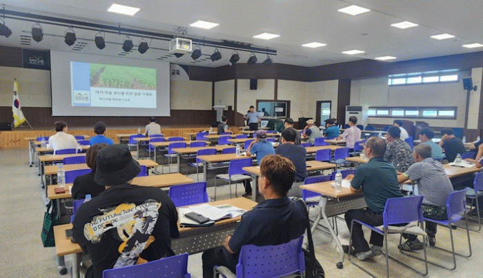 이번 교육에서는 마늘 품종의 특성과 파종 전·후 생육관리 기술을 다뤘으며, 이어 마늘 재배 전 과정의 기계화를 위한 두둑 성형, 파종 간격, 부직포 종류 등 기계화 재배 기술 설명과 질의응답이 진행됐다.