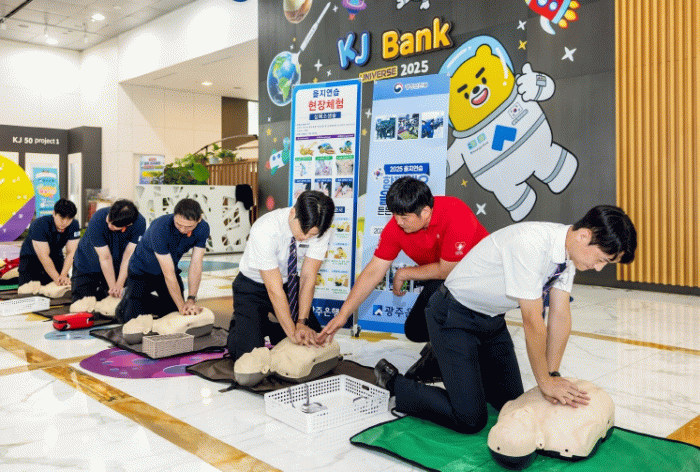 광주은행은 매년 을지연습 및 경비원 교육 과정에 심폐소생술(CPR) 실습교육을 실시하고 있으며, 특히 본점 경비원을 대상으로 외부 전문기관에 심폐소생술 심화과정 위탁교육을 실시하는 등 응급상황 대비 능력을 강화하고 있다.