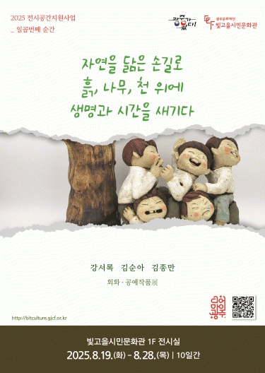 이번 전시에는 강서록, 김종만, 김순아 작가가 참여해 흙, 나무, 천이라는 자연 소재를 활용하여 생명과 시간, 사계절의 아름다움을 담은 작품을 선보인다. 서로 다른 재료와 기법을 사용하지만, 세 작가 모두 자연의 아름다움을 작품으로 풀어내며 따뜻한 감성을 전한다.