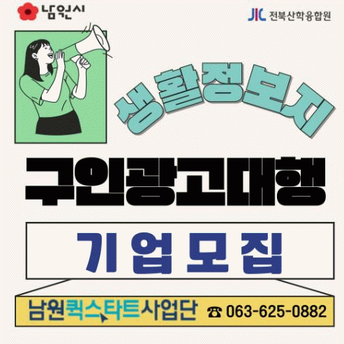 구인 광고 지원을 희망하는 기업은 남원퀵스타트사업단 전화로 신청할 수 있으며, 기업별 맞춤형 구인광고 문안 제작 및 광고 게재까지 전 과정에 대해 지원하고 있다.