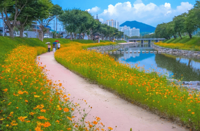 봄에는 벚꽃과 어우러진 꽃잔디·수선화·튤립, 여름부터 가을까지는 황화코스모스·버들마편초, 겨울에는 다양한 경관시설이 어우려져 사계절 풍성한 볼거리를 제공할 예정이다.