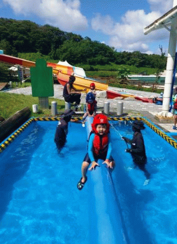 이번 프로그램은 준비운동을 시작으로 구명조끼 착용 방법, 워터슬라이드 체험, 익수자 구조, 익수 사고 체험, 선박 탈출 체험, 급류 사고 체험, 외나무다리 체험 등으로 여름철 물놀이 안전사고를 예방하고 대처할 수 있도록 하고, 가족들과 특별한 체험 하는 기회가 됐다.