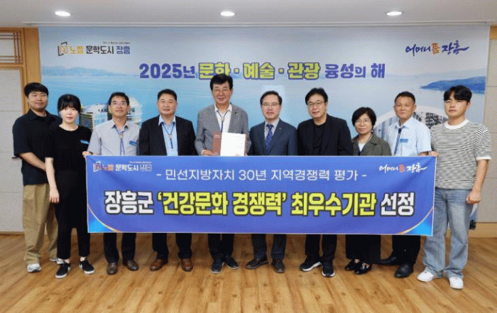한국공공자치연구원이 주관한 ‘민선 지방자치 30년 지역경쟁력 평가’에서 장흥군은 건강문화 분야 최우수기관으로 선정됐다.