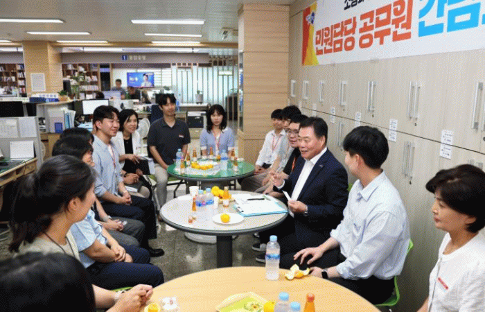 이번 간담회에서 직원들은 그동안 겪었던 다양한 민원 사례와 고충 등에 대해 자유롭고 편안하게 이야기했으며, 김 군수는 직원들의 애로사항을 주의깊게 청취했다.