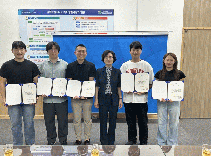 이번 시상식은 경찰청 주관 '2025년 자치경찰 수요기반 지역문제 해결사업‘의 일환으로, 심야시간 자율순찰로봇 도입을 앞두고 전주천변 취약구역에 대한 주민 의견을 수렴하고 이를 로봇 순찰노선에 반영하기 위해 마련됐다.