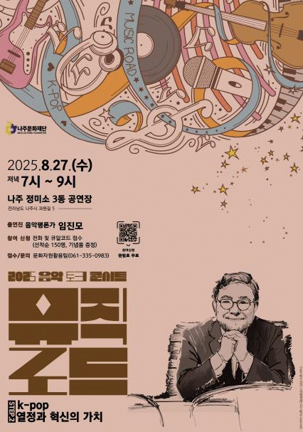 19일 문화재단에 따르면 오는 8월 27일 나주정미소에서 열리는 ‘뮤직로드 Step 2’에는 국내 대표 대중음악 평론가 임진모를 초청해 K-POP의 열정과 혁신을 주제로 음악과 이야기를 풀어낼 예정이다.