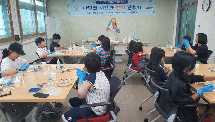 참여 아동들은 향기와 색깔 재료를 선택해서 공예품을 직접 완성해 가며 감성을 키우고 창의력과 집중력을 향상했다.