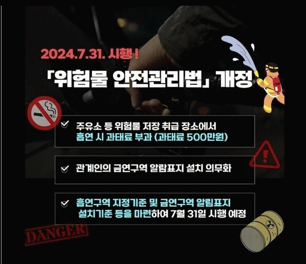 신설된 법령은 누구든지 지정된 장소가 아닌 제조소 등에서 흡연하는 행위를 금지하고 있으며, 시설 관계인에게는 해당 장소가 금연구역임을 알리는 표지 설치 의무를 부여하고 있다. 이를 이행하지 않을 경우 및 위반 시 과태료가 부과된다.