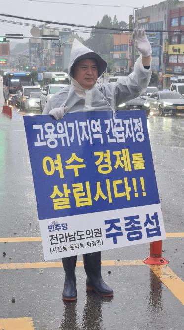 또한 지난 7월부터는 매일 아침 출근시간을 이용해, 여수 쌍봉사거리 일대에서 고용위기지역 지정을 촉구하는 1인 시위를 두 달째 진행 중이다.
