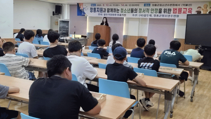 이정우 장흥지원장은 ‘청소년을 위한 법 지식’에 대한 특강을 진행하고 40명의 청소년들이 직접 법복을 입고 모의재판을 체험할 수 있도록 지도했다.