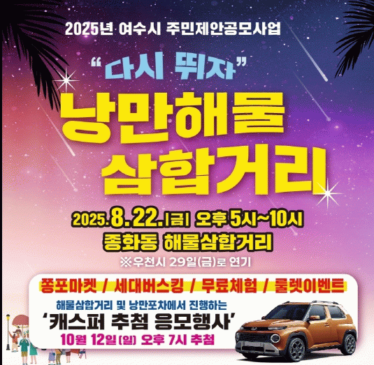 이번 행사는 종포해양공원 주변 상가 등 43개 판매자가 참여하는 벼룩시장(플리마켓), 무료 체험 5종, 거리 공연(버스킹), 룰렛 이벤트 등 다양한 프로그램으로 구성됐다. 또한 경품 추첨 행사(캐스퍼 자동차, 10월 12일 오후 7시 추첨)도 별도로 진행된다.