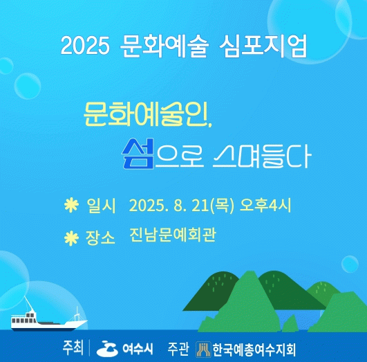 특히 이번 행사는 여수시가 주최하고 (사)한국예총 여수지회(지회장 신지영)가 주관하며, 지역 문화예술인의 참여와 연대를 통해 섬박람회와 연결되는 다양한 예술적 비전과 아이디어를 공유하는 자리가 될 예정이다.