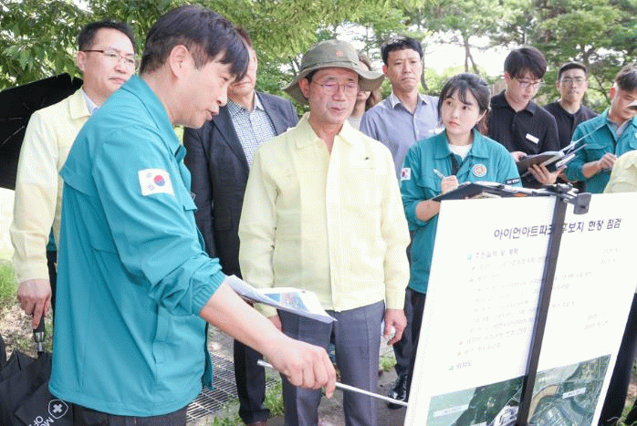 정 시장은 사업 추진 현황을 보고 받고 주민들과 함께 현장을 둘러본 뒤 ▲보행 안전성을 높이기 위해 체육시설 외부 배수로를 디자인형 그레이팅으로 교체 ▲수목 생육을 해치지 않으면서 보행 동선을 고려한 맨발 산책로 조성 ▲생육 불량 수목 교체 및 앉음벽 벤치 설치 등을 관계부서에 지시했다.
