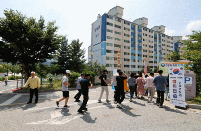 중앙민방위경보통제센터(행정안전부)에서 발령한 공습경보 사이렌과 함께 대피소(부영아파트 지하 주차장)로 이동한 주민들은 현장에서 민방위 훈련 안내 라디오 방송을 청취하며, 비상시 국민 행동 요령 교육과 심폐소생술 실습에 동참했다.