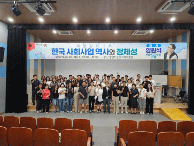 '한국 사회사업 역사와 정체성'이라는 주제로, 서울 푸른복지사무소 양원석 소장이 강의하여 한국 사회복지의 역사적 흐름을 체계적으로 짚어주며 사회복지의 정체성과 역할에 대해 깊이 있는 고찰을 제시하고 현장 사례와 실무 경험을 바탕으로 심층적인 내용을 전달했다.
