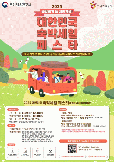 할인 혜택 등 기타 자세한 사항은 ‘2025 대한민국 숙박 세일 페스타’ 공식 누리집 또는 콜센터를 통해 확인할 수 있다.