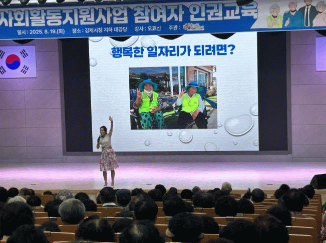 정성주 김제시장은 “어르신들의 사회활동은 지역사회의 소중한 자산이며, 인권 존중은 그 가치를 더욱 빛나게 한다”며 “앞으로도 어르신들이 안전하고 존중받는 환경에서 활동할 수 있도록 적극 지원하겠다”고 밝혔다.