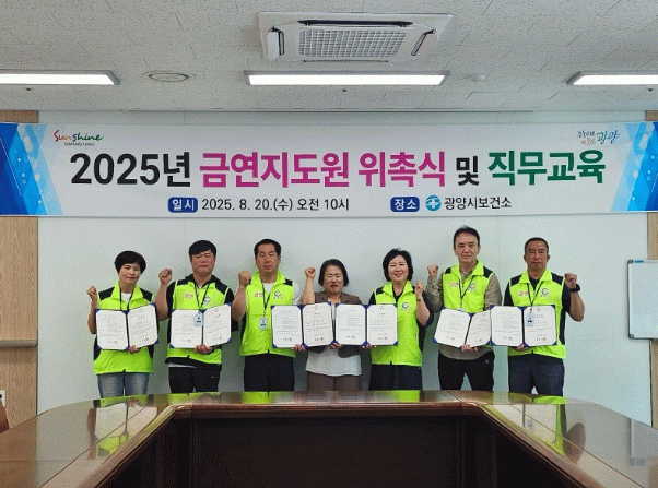 반미순 광양시 건강증진과장은 “흡연 예방과 간접흡연 피해 방지는 시민 건강을 위한 필수과제”라며 “금연지도원들이 건강한 생활환경 조성에 크게 기여하길 기대한다”고 밝혔다.