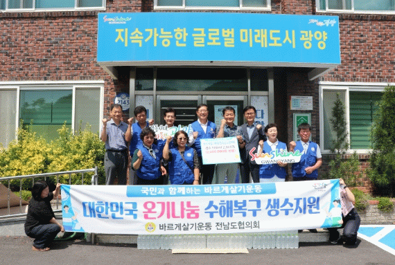 이번 생수 기탁을 통해 수해 주민들에게 따뜻한 위로를 전한 바르게살기운동 전남도협의회는, 바른 생활문화 확산과 이웃사랑 실천을 위해 무궁화동산 조성, 재능나눔 봉사, 태극기 달기 캠페인 등 다양한 사회공헌 활동을 펼치고 있다. 생수는 다압면이장협의회를 통해 피해 주민들에게 직접 전달될 예정이다.