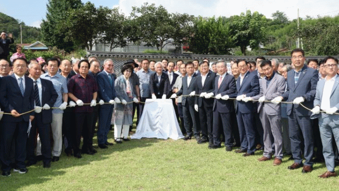이번 제막식은 근대 전환기의 사상가이자 종교 지도자인 강일순(1871~1909) 선생의 생가터가 지닌 역사·종교적 가치를 기리고, 전북 첫 종교문화유산으로 지정된 의미를 널리 알리기 위해 마련됐다.