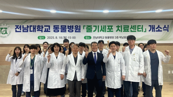 이봉주 전남대학교 동물병원장은 “줄기세포 치료센터 개소는 단순히 새로운 치료를 도입하는 것을 넘어, 지역 사회의 반려동물들에게 건강한 삶을 되찾아주는 희망의 시작”이라며, “최상의 의료 서비스를 제공하여 반려동물과 보호자 모두의 삶의 질을 높이는 데 최선을 다하겠다”고 포부를 밝혔다.