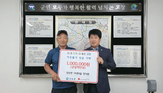 정국진 성송면장은 “정석환님의 따뜻한 나눔에 깊은 감사를 드리며, 기탁해주신 성금이 소외된 이웃들에게 꼭 필요한 지원으로 이어질 수 있도록 최선을 다하겠다”고 전했다.