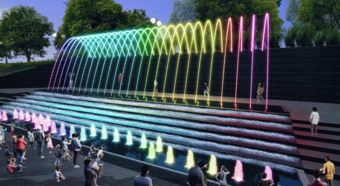 조성될 벽천분수는 길이 61m, 폭 13.9m, 높이 5.3m 규모로 26개의 점핑분수, 캐스케이드, 30개의 캔들 분수로 구성된다.