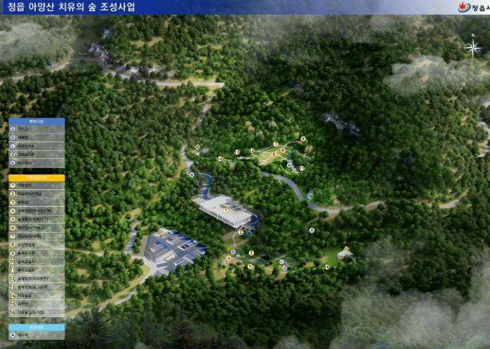 치유의 숲에는 치유센터를 비롯해 치유숲길, 풍욕장 등 다양한 테마공간이 들어선다.