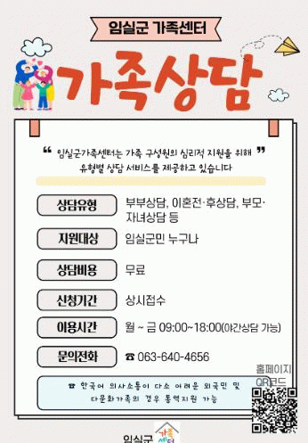 상담 신청은 임실군가족센터으로 전화하거나 가족센터 홈페이지에서 할 수 있다.