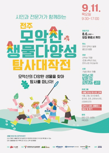 전주시와 전북특별자치도지속가능발전협의회는 오는 9월 11일 전주 모악산 일원에서 ‘2025년 전주 모악산 생물다양성 탐사대작전’을 개최한다.