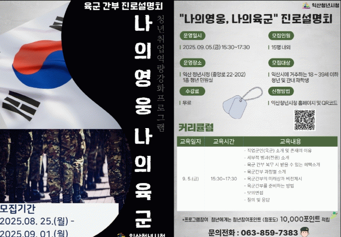 정헌율 익산시장은 "이번 설명회가 군 간부라는 전문 직업에 대한 이해를 높이는 계기가 되길 바란다"며 "앞으로도 청년들의 다양한 진로 선택을 지원하고, 실질적인 취업 역량을 높일 수 있는 맞춤형 프로그램을 지속적으로 운영하겠다"고 전했다.