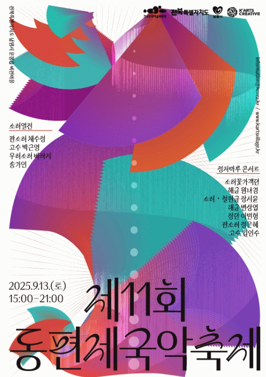 동편제 국악의 상징인 안숙선 명창을 비롯해, 대중성과 전통성을 함께 갖춘 송가인, 창의적인 무대로 주목받는 우리소리 바라지, 그리고 깊이 있는 소리를 전하는 채수정, 박근영이 함께해 국악의 과거와 현재, 미래를 아우르는 감동의 무대를 선사할 예정이다.