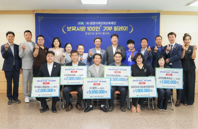 이광용 이사장은 “오늘 이 자리는 지역사회 곳곳에서 모인 따뜻한 마음이 아이들에게 이어지는 매우 소중한 자리다”라며 “지금까지 92명이 기부 릴레이에 참여해 주셨고, 이는 재단이 안정적으로 운영되는 데 큰 힘이 되고 있다. 광양에서 태어난 아이들은 광양 시민 모두가 함께 키운다는 마음으로 더 많은 분들이 관심을 가져주길 바란다. 앞으로도 재단은 더욱 투명하고 책임감 있게 사업을 추진해 나가겠다”고 말했다.
