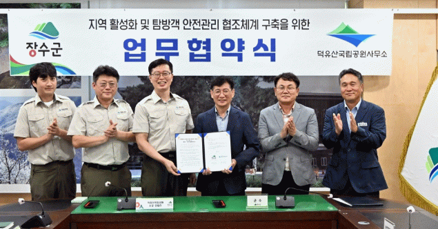 이번 협약은 남덕유산 신규 탐방로 개설에 따른 탐방로 안전관리와 재난·재해 발생시 신속한 대응 및 탐방로 이용 활성화를 위한 협조 체계를 구축하기 위해 마련됐다.