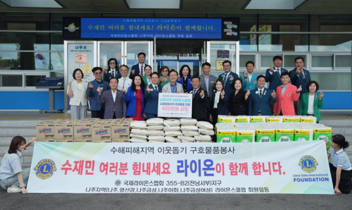 윤병태 나주시장은 “재난 상황 속에서도 어려운 이웃을 위해 나눔을 실천해 주신 국제라이온스협회와 나주지역 라이온스클럽에 깊은 감사를 드린다”며 “기탁해 주신 물품은 호우 피해 가구에 소중히 전달하겠다”고 전했다.