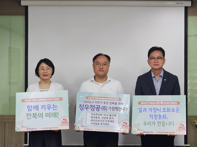 이번 간담회에는 천영평 전북자치도 기획조정실장, 조윤정 인구청년정책과장, 이상완 정우정공㈜ 대표이사, 육명진 인구보건복지협회 진북지회 본부장 등이 참석해 가족친화 문화 확산 정책의 현장 안착 사례를 점검하고, 기업과의 협력 강화 방안을 논의했다.