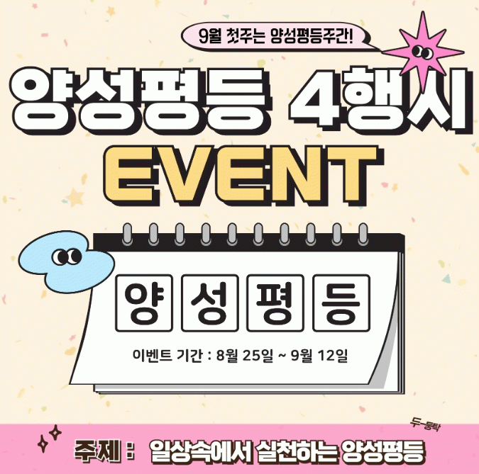 이번 이벤트는 ‘일상에서 실천하는 양성평등’을 주제로 8월 25일부터 9월 12일까지 3주간 진행된다.