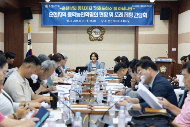 이날 간담회는 조례안을 대표 발의할 예정인 이복남 의원이 조례안 제정의 취지와 주요 내용을 설명한 후, 문화경제위원회 의원들을 비롯해 관련 전문가, 순천시 국가유산과 직원 및 시민들이 다양한 의견을 나누며 동학농민혁명 정신 계승의 필요성에 대해 공감하는 시간을 가졌다.