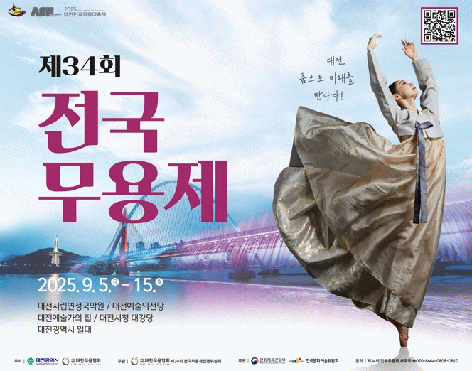 대전광역시와 (사)대한무용협회가 주최하고, (사)대한무용협회와 제34회 전국무용제 집행위원회가 주관하는 이번 무용제는 15일까지 11일간 대전예술의전당, 대전시립연정국악원, 대전예술가의 집 등 대전 전역에서 열린다.