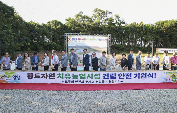 영암군이 21일 도포면 도포초 수산분교장 폐교부지에서 ‘황토 자원 치유농업시설 착공식’을 열었다.