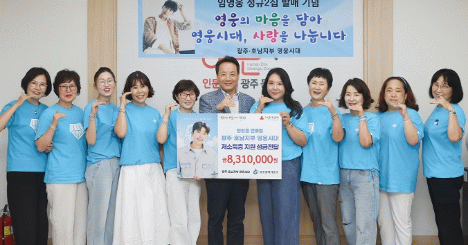 광주·호남지부 영웅시대는 광주사회복지공동모금회를 통해 성금을 전달했으며, CD 제작 없이 발매되는 정규 2집(8월 29일 예정) ‘아임 히어로 2’ 앨범을 기념해 팬들이 CD 구매 비용을 지역사회에 환원하자는 뜻을 모아 자발적으로 진행됐다.