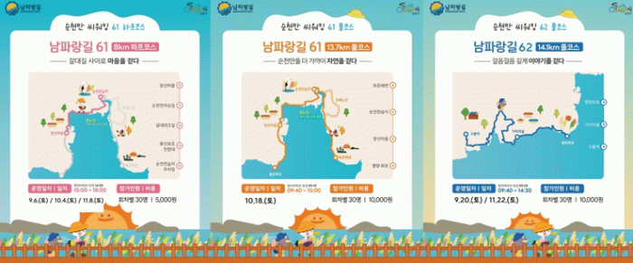 시 관계자는 “남파랑길은 바다와 갯벌, 갈대밭이 어우러져 자연을 만끽하며 힐링과 치유를 경험할 수 있는 최고의 코스”라며 “많은 분들이 이 길을 걸으며 순천의 특별함을 느끼고 소통하는 소중한 시간을 보내시길 바란다”고 전했다.