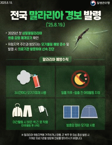 말라리아는 모기를 통해 전파되는 제3급 법정감염병으로, 국내에서는 매년 4월부터 10월까지 집중 발생하는 양상을 보인다.