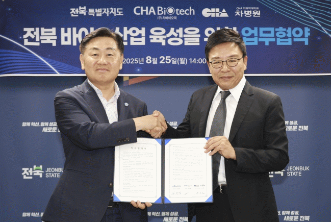 ㈜차바이오텍은 세포치료제와 첨단바이오 기술을 선도하는 기업으로, 줄기세포 보관 및 연구, 면역세포 치료제 개발 등 미래 의료산업 핵심 분야에서 독보적인 기술력을 보유하고 있다. 이번 협약을 통해 전북의 연구개발 인프라와 ㈜차바이오텍의 기술력이 결합하면 상당한 시너지 효과가 기대된다.