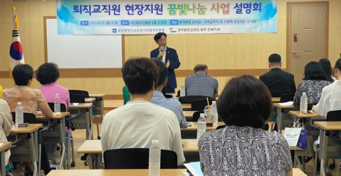이번 설명회는 퇴직 후에도 학교 현장을 지원하며 재능을 나눌 수 있는 ‘꿈빛나눔 사업’ 운영 취지를 안내하고 공무원연금공단 광주전북지부 안진우 과장의 특강 등 순으로 진행됐다.