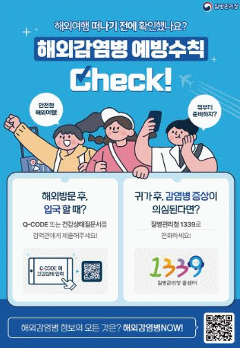 또한 질병관리청 ‘해외감염병 NOW’ 사이트를 통해 방문 국가의 감염병 발생 현황을 확인해야 한다.