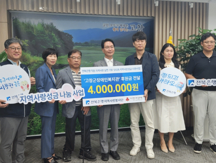 고창군에 따르면 지난 23일 전북은행이 임직원들의 자발적 참여로 조성한 ‘지역사랑성금’을 통해 고창군장애인복지관에 사업비 400만원을 지원한다고 밝혔다.
