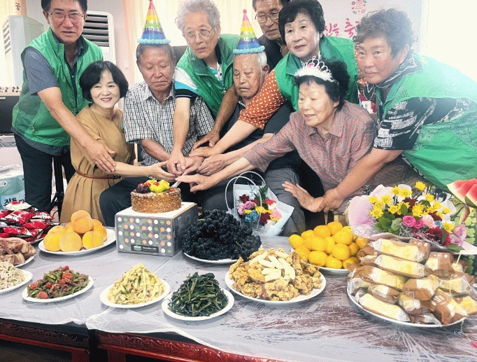 생신상에는 계절 음식과 떡, 과일 등 어르신들이 좋아하는 음식들이 정갈하게 차려졌으며, 마을 주민들도 함께 어르신들의 생신을 축하하며 따뜻한 분위기를 더했다.