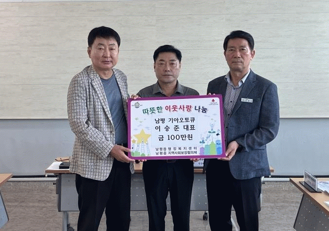 노상수 남평읍장은 “지역사회를 위한 관심과 후원에 깊이 감사드리며 기탁해 주신 성금은 지역 복지 증진을 위한 실질적이고 효과적인 사업에 잘 활용하겠다”고 말했다.